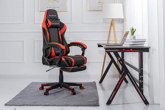 Ergonomic High-Back Swivel Gaming Chair in PU Leather with Headrest, Lumbar Support, Adjustable Armrests, and Retractable Footrest (Commodore - Black/Red)