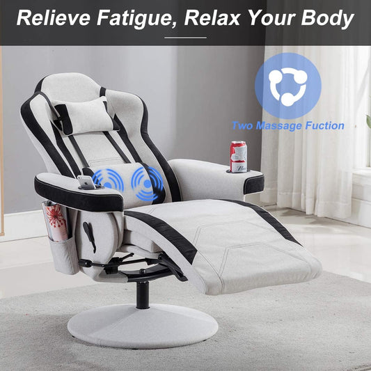 Ergonomic Gaming Chair with Adjustable Massage Lumbar Support and Headrest, Grey with Footrest