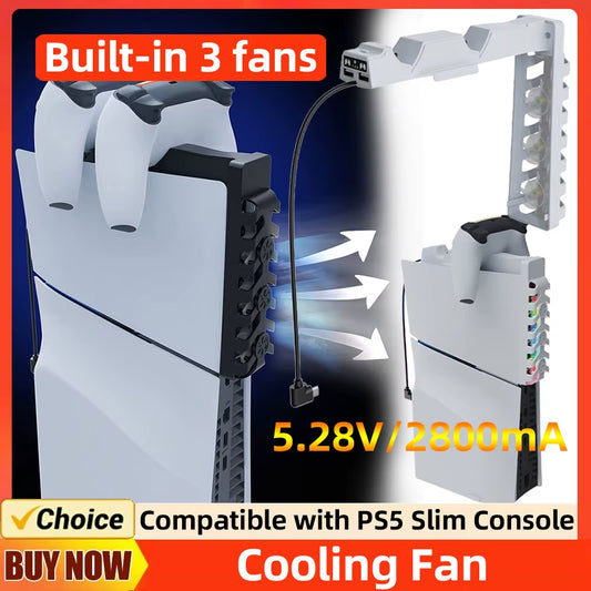 Dual Controller Charging Station with RGB Lighting and Cooling Fan System for PS5 Slim Controllers
