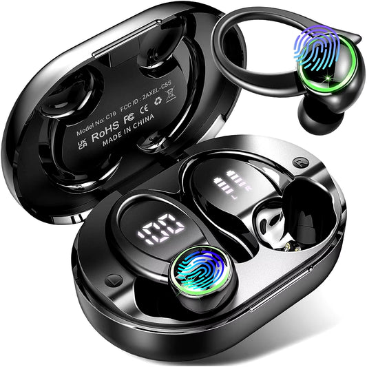 Bluetooth 5.3 Earphones True Wireless Headphones with Mic Button Control Noise Reduction Earhooks Waterproof Headset for Sports